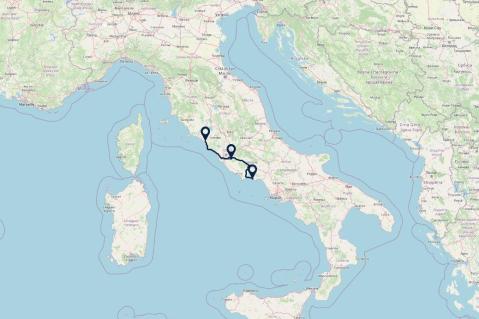 Via Toscane, Umbrië, Lazio naar de Amalfikust en Puglia